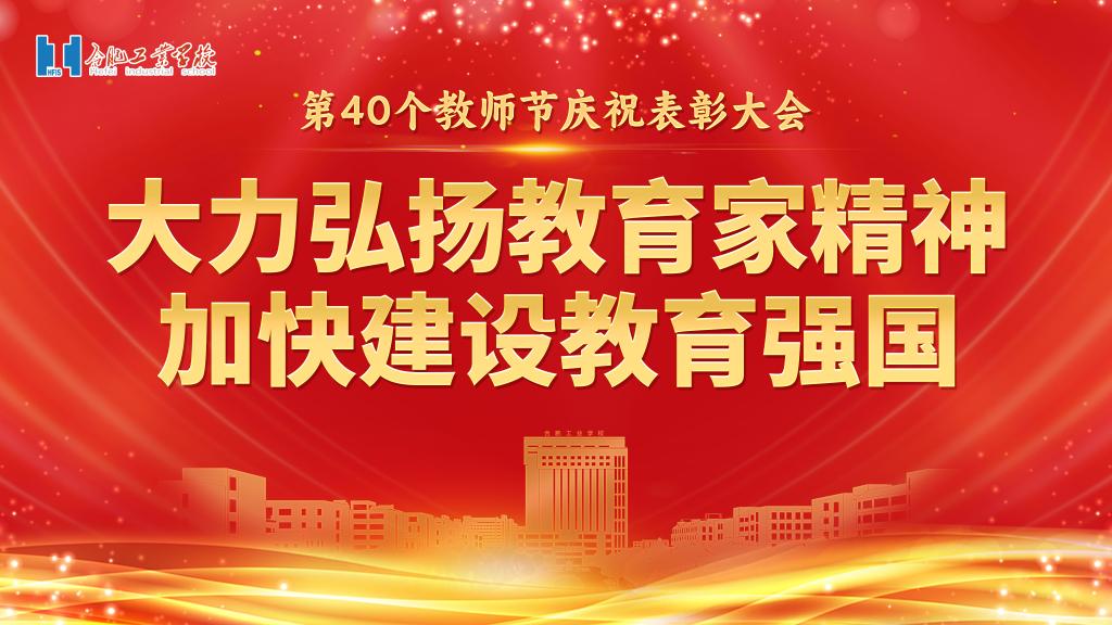 金秋九月,杏坛飘香。9月10日,合肥工业学校隆重召开第40个教师节庆祝表彰大会。大会以“大力弘扬教育家精神,加快建设教育强国”为主题,旨在大力弘扬教育家精神,表彰先进典型,团结凝聚全校教职工,齐心协力推进学校各项事业高质量发展,以更加奋发有为的精神状态投身教育强国建设。来时沃土开新芽,今日满园尽芳华。大会在教师节微视频中正式拉开帷幕,短片中一段段真实的采访、一幕幕感人的瞬间,展示了我们合肥工业学校教...