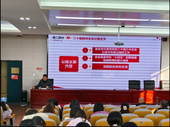 2026年1月14日,校党委委员聊宗龙为第三党支部全体党员带来一场精彩党课,将党的二十届四中全会精神与学校发展紧密融合。他先介绍党的二十届四中全会情况,重点强调审议通过《中共中央关于制定国民经济和社会发展第十五个五年规划的建议》,并着重解读“十五五”时期经济社会发展六个“坚持”。聊宗龙委员在授课过程中巧妙地将党的二十届四中全会精神与学校发展紧密结合。他指出,学校目前正处于转型升级的关键阶段,恰逢“十五...