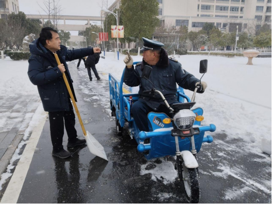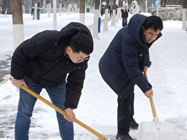 天降瑞雪,银装素裹,校园处处皆是冬日盛景,却也给师生出行、校园运转带来了诸多不便。面对降雪天气,学校迅速行动、周密部署,统筹做好各项保障工作,党员干部带头冲锋,团员志愿者积极行动,全体教职工各司其职,用责任与担当筑牢校园安全防线。雪情就是命令。为保障校园道路畅通和师生出行安全,学校第一时间启动应急预案,校领导班子成员一线协调指挥,扫雪、除冰、后勤保障等工作有条不紊,为师生营造一个温暖安全的校园...