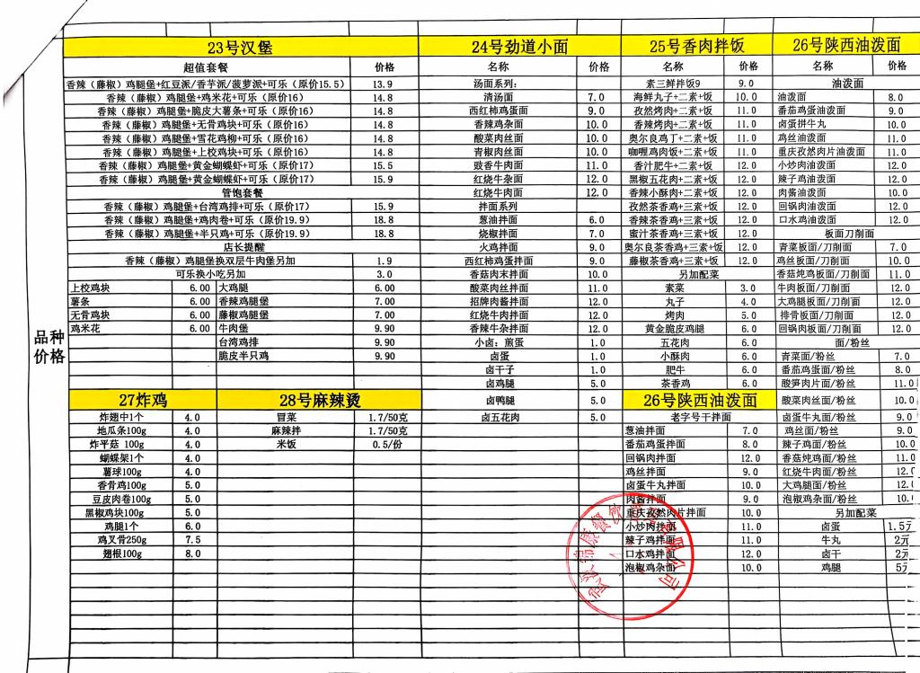 合肥工业学校第二食堂九月份食品价格公示