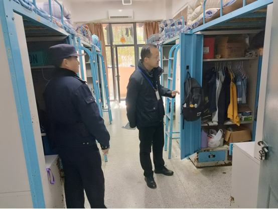 为扎实推进学生安全管理工作,2月24日中午,我校安全保卫处联合学生处、各学部和磨店派出所对学生公寓开展安全大检查。