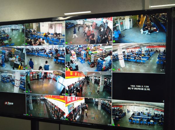 在食堂总控室,明厨亮灶的显示屏上展示着食堂各个操作间、功能室的实时状况,整个工作规范有序。