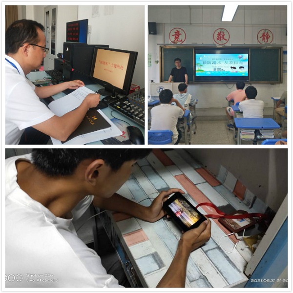 我校通过召开“防溺水安全”主题班会,并在课后组织学生观看防溺水安全宣传视频,用详实案例让学生了解溺水事故给家庭和社会带来的严重伤害。同时,在校园内电子显示屏播放防溺水宣传警示语,QQ群、微信群、钉钉等多个信息平台,向学生发布防溺水安全教育相关信息,在班级内张贴“防溺水六不准”宣传单,校园内营造出浓厚的“防溺水”安全教育氛围。