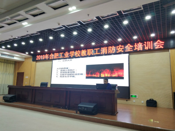 为加强和提高教职工消防安全意识,2019年10月30日下午,我校组织开展了以“珍惜生命 远离火灾”为主题的消防安全知识培训讲座,特邀合肥新站消防救援大队参谋关雨主讲,全体教职工及保安、物业工作人员参加。