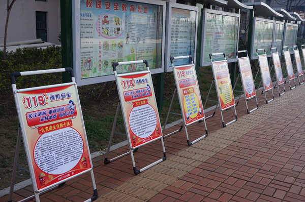 一是充分利用办公群、电子屏等信息化手段,及时发布工作动态,在各学部和高层学生公寓出入口滚动播放警示片,大力营造宣传教育氛围。二是在主干道和公寓广场布置橱窗,制作展板,向师生全面、系统地介绍、普及法律和安全知识。三是结合校情和时令特点,召开全校广播大会和主题班会。会上,学校安全保卫处、学生处着重介绍了高层学生公寓的消防常识,并对防溺水等工作提前做了布置安排。