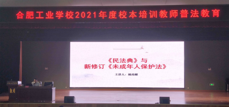 为进一步加强我校法治教育,发挥法治在教师从教行为中的先导和引领作用,结合我校校本培训的各项安排,2021年7月3日上午,我校在科技楼三楼报告厅开展教师普法教育培训。