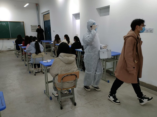 情景一:学生入校。学生排队返校(人间距1米)、体温检测、扫安康码、验收“学生健康承诺书”、对体温略高的学生的处置、对疑似发热人员的处置、对体温严重异常的学生的处置、对校北门及留观区的全面消毒。