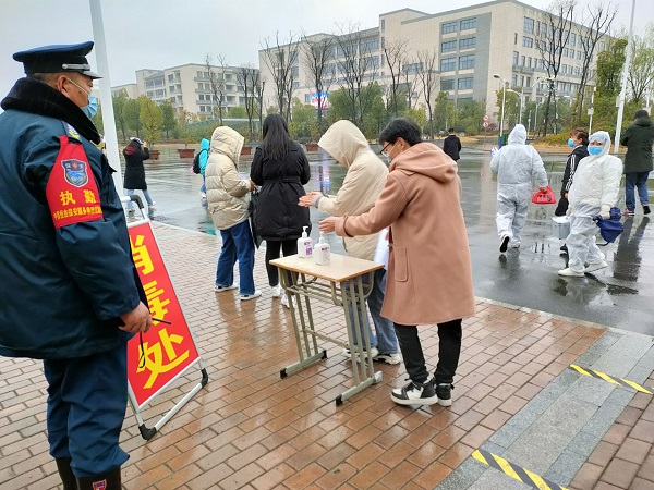 为了落实安徽省教育系统新冠肺炎疫情防控工作领导小组印发的《安徽省普通中小学幼儿园新冠肺炎疫情防控2021年春季开学工作指南》的通知精神,提高我校疫情防范意识和应急处置能力,保障开学工作平稳有序、安全高效,继续打好新冠肺炎疫情防控阻击战,我校领导高度重视,组织学校多个部门,于2021年2月25日上午9点,进行了一次疫情防控应急演练。