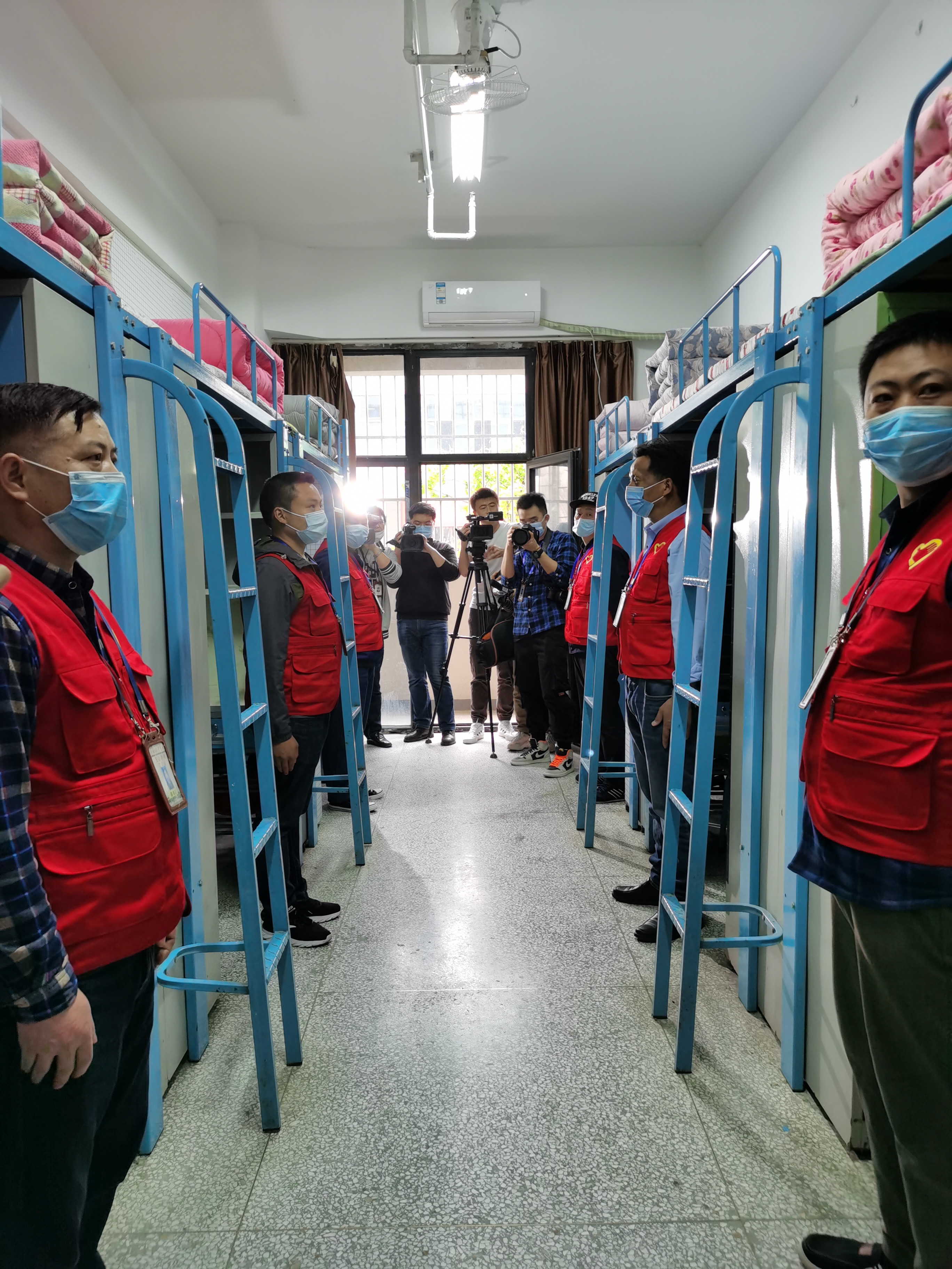 图为宿舍管理,就寝前,生活老师要对每位同学再次进行体温测量。