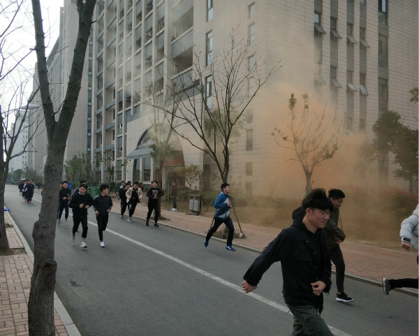 演习开始,学生公寓3号楼某宿舍模拟发生火情,飘出浓浓烟雾,校园消防警报准时拉响。各单位按照应急处置预案,迅速展开火情扑救,组织学生快速进入紧急疏散状态。根据演练方案设定的疏散路线紧张有序地从宿舍楼撤离到指定集合位置。各楼层及时核查人数,现场安抚,并向指挥部报告人员情况。短短几分钟,同学们地顺利地撤离到了安全地带,整个应急演练活动安全有序、规范高效,现场没有发生一例奔跑跌倒、拥挤踩踏等事故,达到了演练的预期目标。