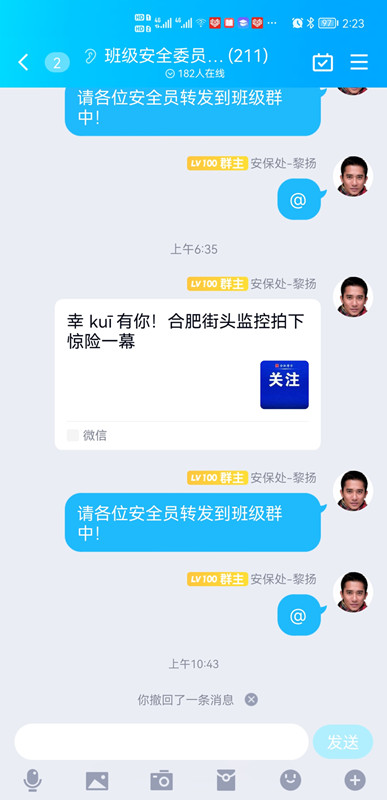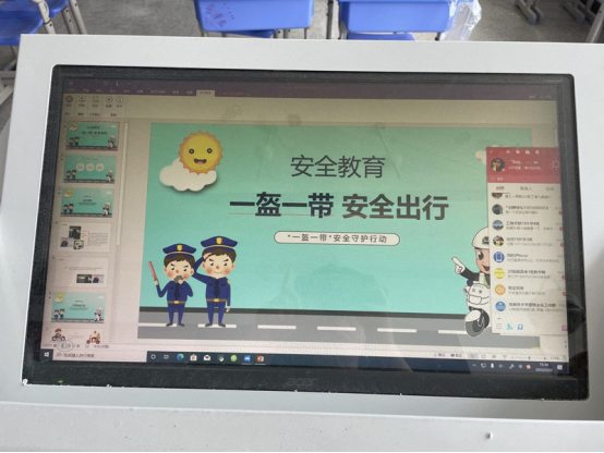 学校利用电子屏宣传、QQ群推送等形式积极宣传“一盔一带”安全守护行动,做到全员知晓。5月23日各班级班主任通过召开线上主题班会教育同学们如何文明、安全出行和乘车。重点针对未成年人乘坐摩托车、电动车不戴头盔等违法行为,剖析不愿意戴头盔的心理原因及其危害性,帮助同学们了解安全头盔使用的目的和意义,引导同学们关注交通安全、认知危险、增强自我保护意识和守法意识。一是是采取以案说法形式,详细讲解不遵守交通规则的危害性及可能造成的后果,警示现场学生要从小做起,从自身做起,自觉遵纪守法,安全文明出行;二是从同学们日常步行、乘车、骑车三个方面入手,传授其在马路上行走时如何避让车辆、乘车注意事项、驾驶自行车上、放学应遵守的交通法律法规。