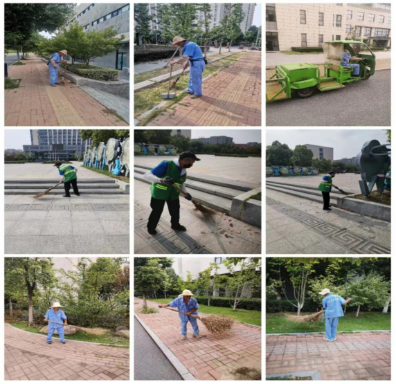 保洁员对校园公共环境进行不间断的溜达保洁并及时清运垃圾,进行全覆盖式卫生保洁专项作业随处可见他们衣服上的汗水浸湿的背影,坚守在各自的岗位上。确保校园环境优美,洁净,给新生留下美好的校园初映象。