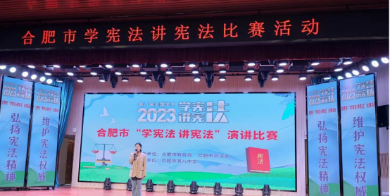 积极参加合肥市“学宪法 讲宪法”演讲比赛。2023年9月27日下午,我校服饰部22级学生邵惜文参加了由市教育局和市普法办联合举办的合肥市中小学“学宪法 讲宪法”高中组的演讲比赛。